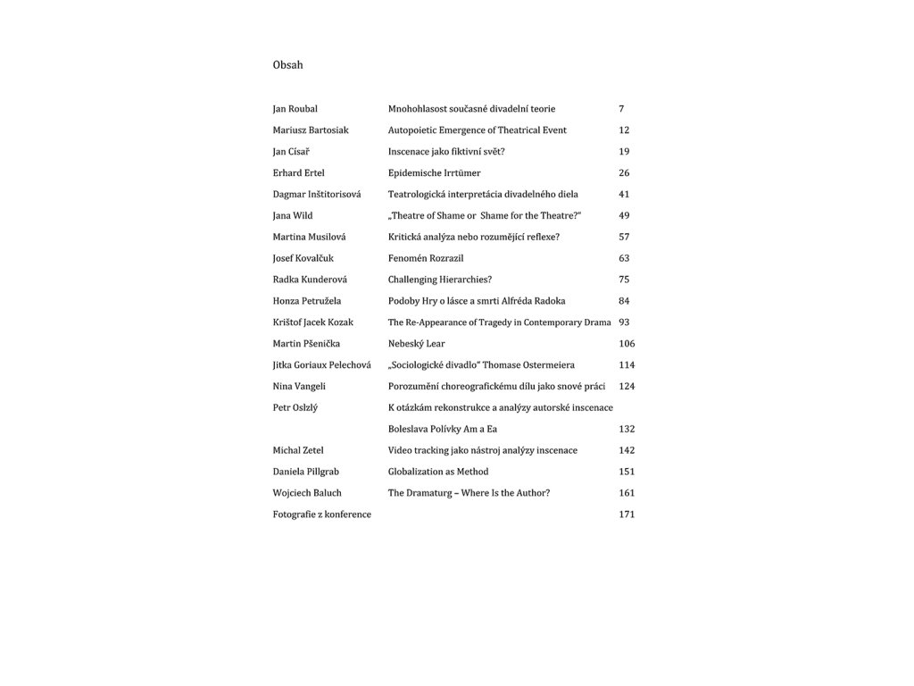 Sborník obsahuje příspěvky z mezinárodní teatrologické konference věnované památce dlouholetého pedagoga DF JAMU a představitele jedné z cest k analýze inscenace, prof. PhDr. Bořivoje Srby, DrSc. Konference Aktuální otázky analýzy inscenace/představení se konala 21.–22. listopadu 2014 a vystoupili na ní odborníci z České republiky, Slovenska, Polska a Rakouska.