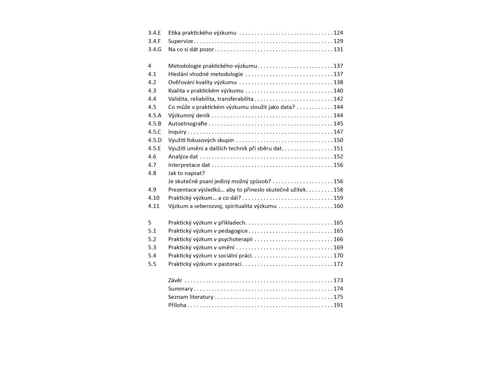 Tato kniha je určena praktikům z různých oborů: terapeutům, umělcům, pedagogům, kněžím, zdravotníkům atd., kteří mají rádi svou práci a cítí, že pro ně nastala vhodná doba posunout svoji praxi o krok dál. Nabízí jim k tomu netradiční nástroj: výzkum. Výzkum jako nástroj ke zmapování, hlubšímu pochopení, případně proměnění toho, „co to v té svojí praxi vlastně dělám“. Řada praktiků je přesvědčena, že výzkum je sice důležitý, ale v každodenním shonu na něj není čas. Zároveň mají zkušenost, že výzkum málokdy odpovídá na jejich skutečné otázky. Doufám, že tato kniha změní Váš pohled. Nabízí výzkum jako místo zastavení, reflexe, společného promýšlení a proměny. Dává praktikům do ruky jednoduché a dobře popsané nástroje, které k této reflexi mohou použít. Dodává odvahu lidem, kteří se již léta věnují praxi, aby se opět vrátili ke studiu a pomocí výzkumu posunuli svou práci o krok dál.