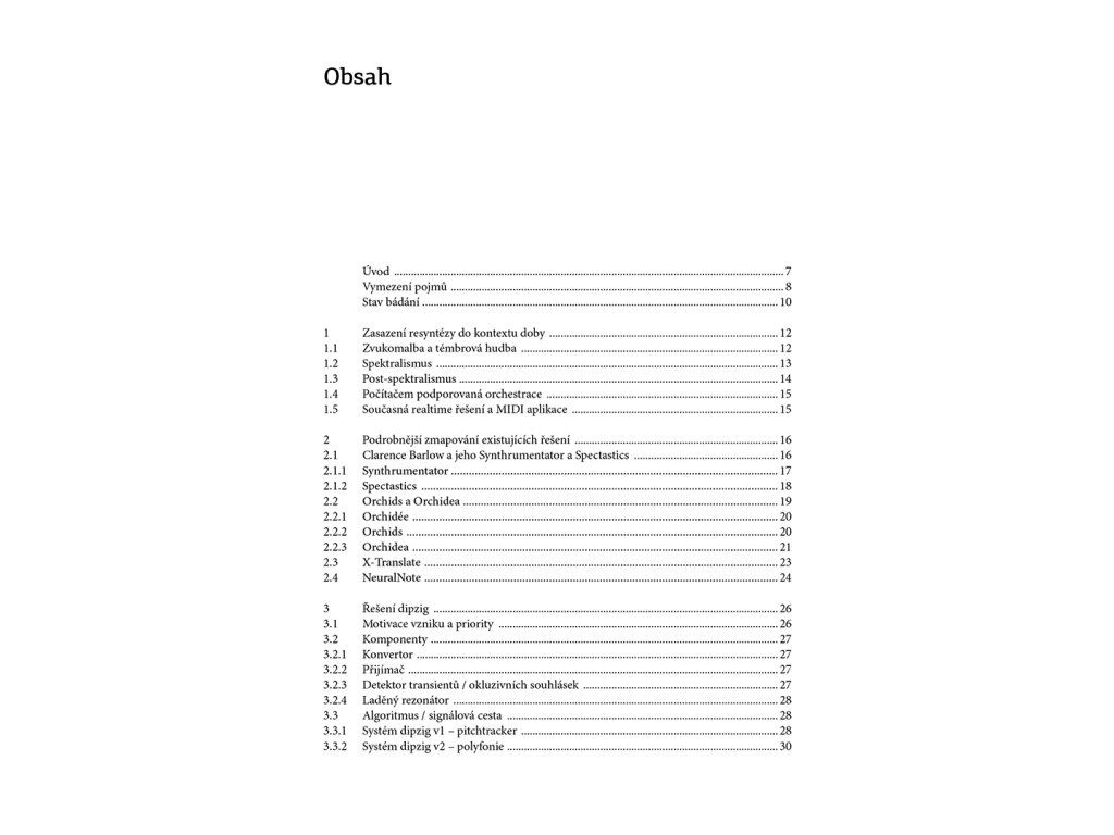 Publikace mapuje a porovnává aktuální možnosti resyntézy v reálném čase a její potenciální umělecké využití. Tento průzkum taktéž zahrnuje analýzu a komparaci jejího uplatnění ve vybraných uměleckých dílech. Dále jsou podrobně rozebrány metody použité v autorském systému dipzig, aplikovaném ve skladbách Revariations, Reactions, Tichá pošta, Už? a XMAS/MSP. Autor také reflektuje výhody a nevýhody daného algoritmu ve srovnání s jinými existujícími řešeními. Závěrem navrhuje možnosti rozšíření zmíněného algoritmu o nové technologické prvky, jež by zvýšily jeho funkčnost a daly vzniknout novým možnostem jeho využití v umělecké praxi.